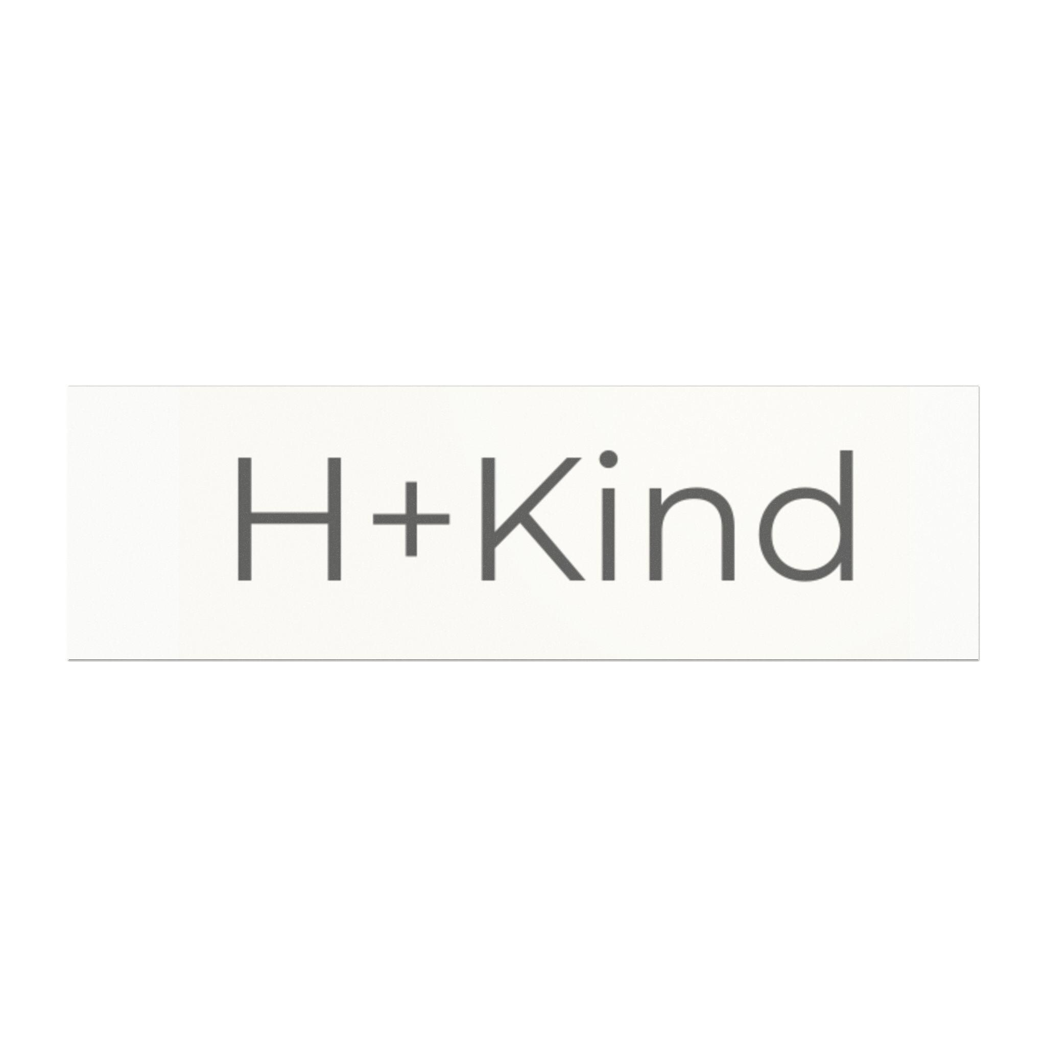 A clean, understated car magnet that says a lot with just a few letters. This 10"x 3" vinyl magnet features a soft white base and matte finish with a simple “H+Kind” mark in modern, neutral type. It clings securely with a black magnetic backing and stands up to rain, road grime, and sun without losing its subtle presence. Slide it onto the rear of a car, a metal water cooler, or a locker to share a quiet message of kindness without shouting. The white base may show through darker design elements, giving the piece a gentle, organic look. Made in the USA using digital-direct printing on durable PVC vinyl, built for everyday use and easy to reposition whenever you want to change the message you carry.
