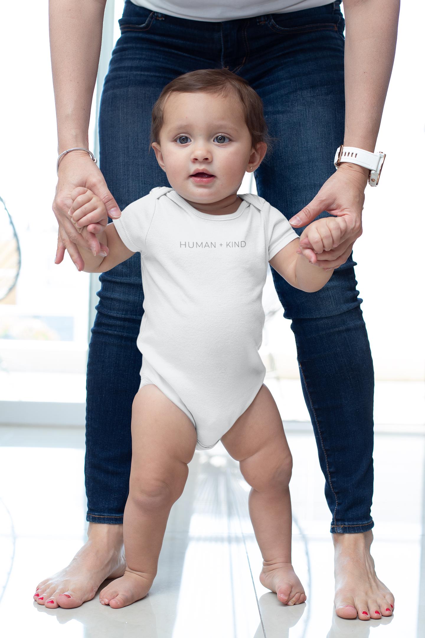 Soft, simple, and thoughtfully made, this organic baby bodysuit wraps little ones in gentle, breathable cotton while carrying a quiet message of kindness. The clean white fabric and subtle front print sit close to the skin so babies stay comfortable whether napping, nursing, or crawling. Practical details like an expandable lap shoulder neckline and higher-front snap closure make dressing and changing quick and low-stress. It’s built to retain its shape and wash after wash softness, so it becomes one of those go-to pieces parents reach for again and again.