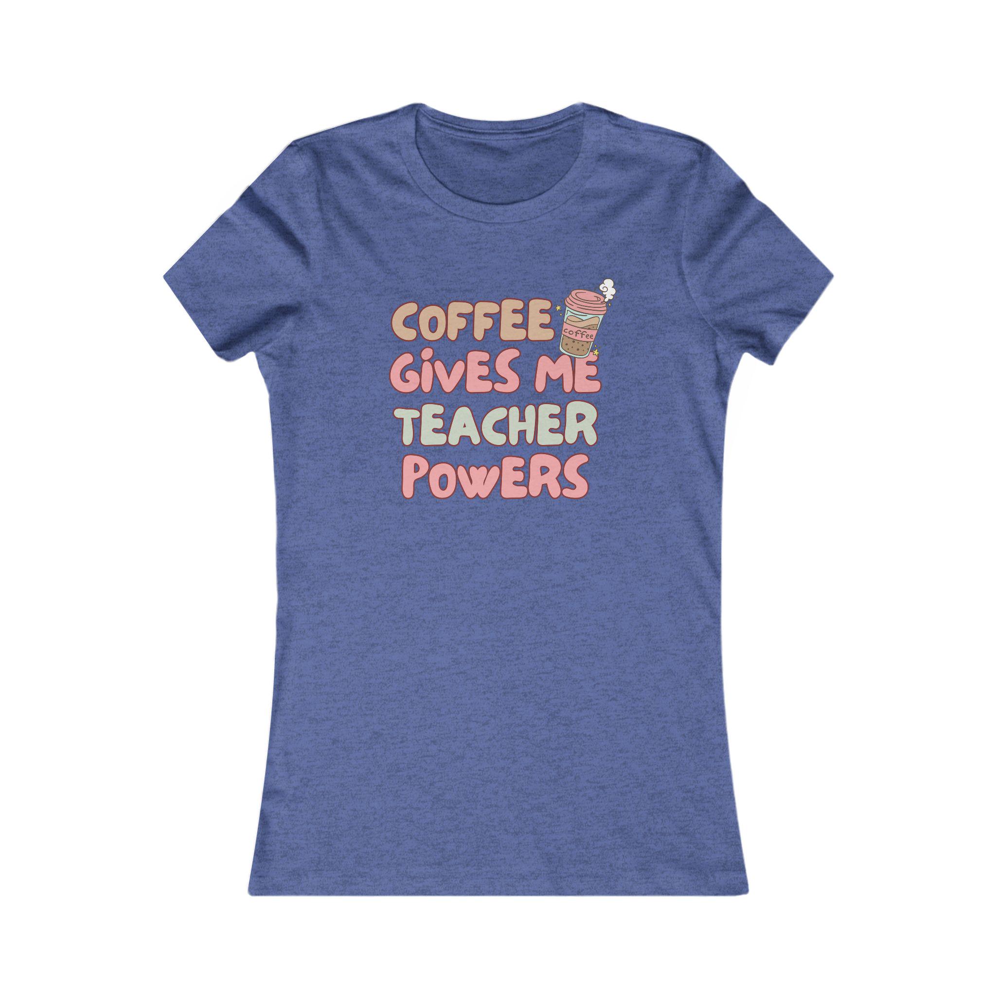 A soft, slim-fit tee that speaks to the classroom early-risers and after-school graders. The front features playful hand-drawn lettering that reads “Coffee gives me teacher powers,” in warm pastel tones with a tiny steaming cup illustration- a lighthearted nod to the fuel behind lesson plans and lunchtime emergencies. The shirt’s light, breathable fabric and slightly longer body make it comfortable for layered mornings before the bell and easy to move in during recess duty. It sits close to the body for a flattering silhouette while the ribbed collar, shoulder tape, and side seams keep the shape lesson after lesson. Sized to a slimmer fit with a tear-away label for itch-free wear.